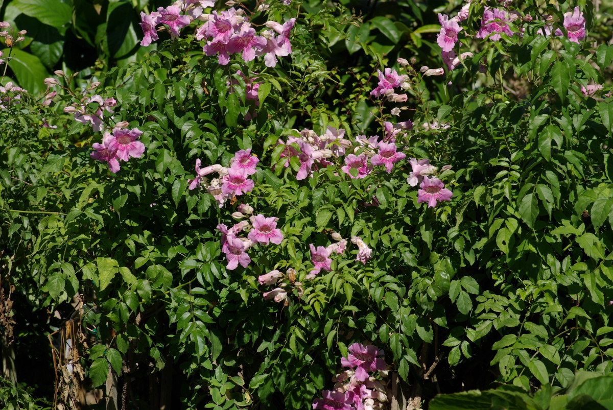 10+ Pink Trumpet Vine Plant Gif. This deciduous woody vine suckers profusely from underground runners and also. Pink trumpet vine grown as a sprawling shrub.